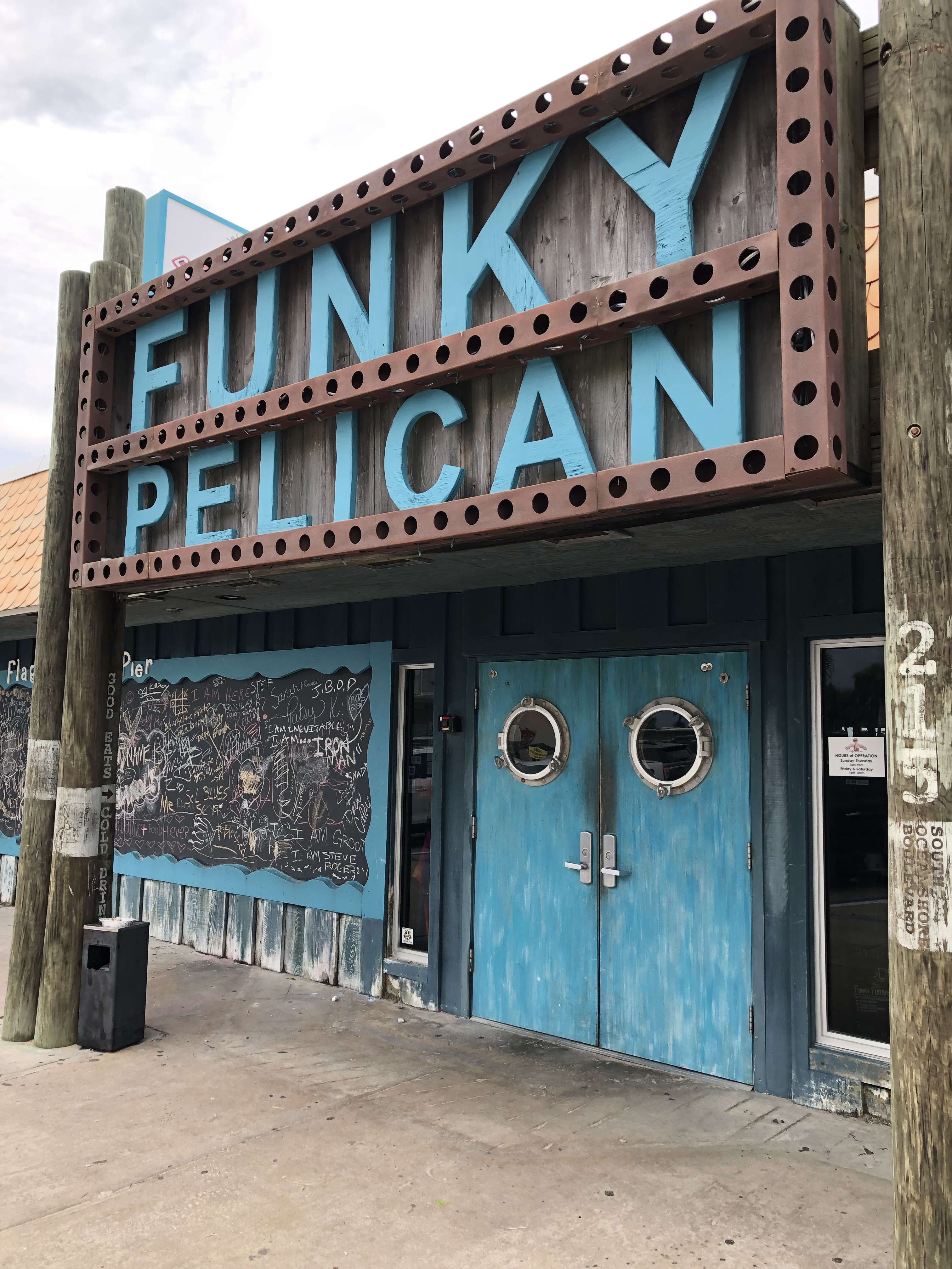 Just north of the loop’s A1A strip is the Flagler Beach Fishing Pier entrance, a building with an A-shaped roof that clearly reminds you that you are in Flagler Beach. This is also where you find the iconic Funky Pelican restaurant and its huge chalkboard for visitors to compose fun-to-read messages. The food is good, the decor is funky, and the merchandise is fun—get funked up! (we ate at the Funky Pelican on a prior visit to Flagler Beach).