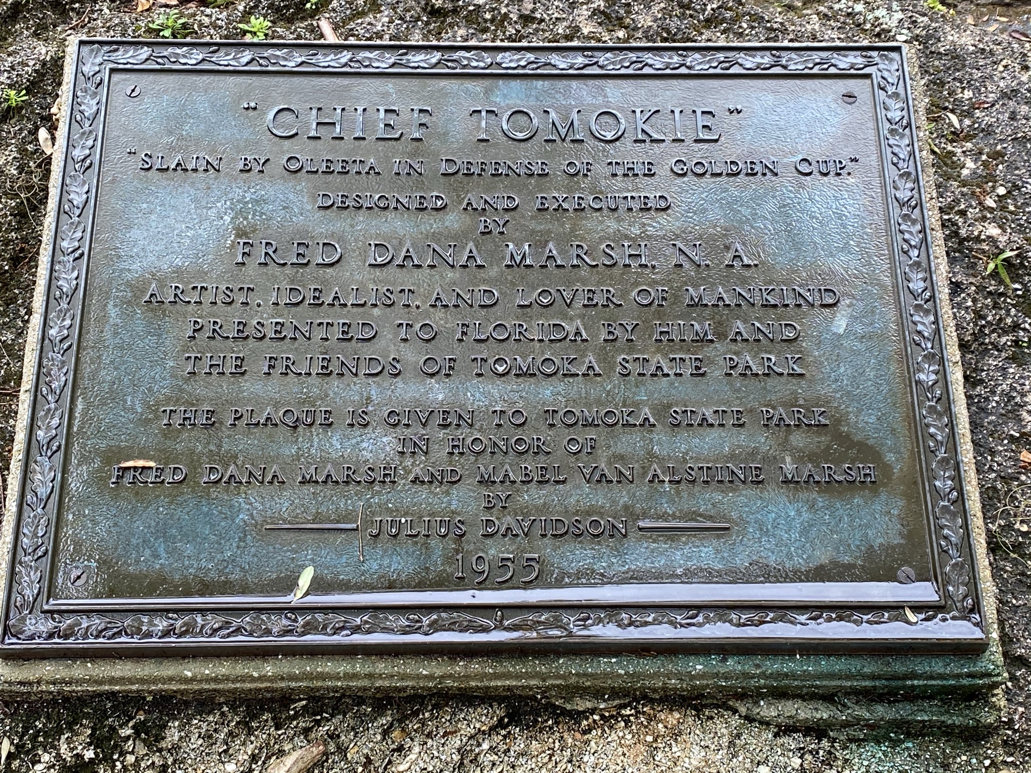 Within the park, a curiosity mentioned on Roadside America gives a brief history and potential demise of the “Invincible Chief Tomokie” statue. The mythical story of Chief Tomokie drinking sacred spring water, thus angering opposing warriors and eventually bringing death upon him from an arrow of the Timucuan princess, Oleeta, might conjure comparison to the Fountain of Youth (another Florida curiosity, found in St. Augustine).