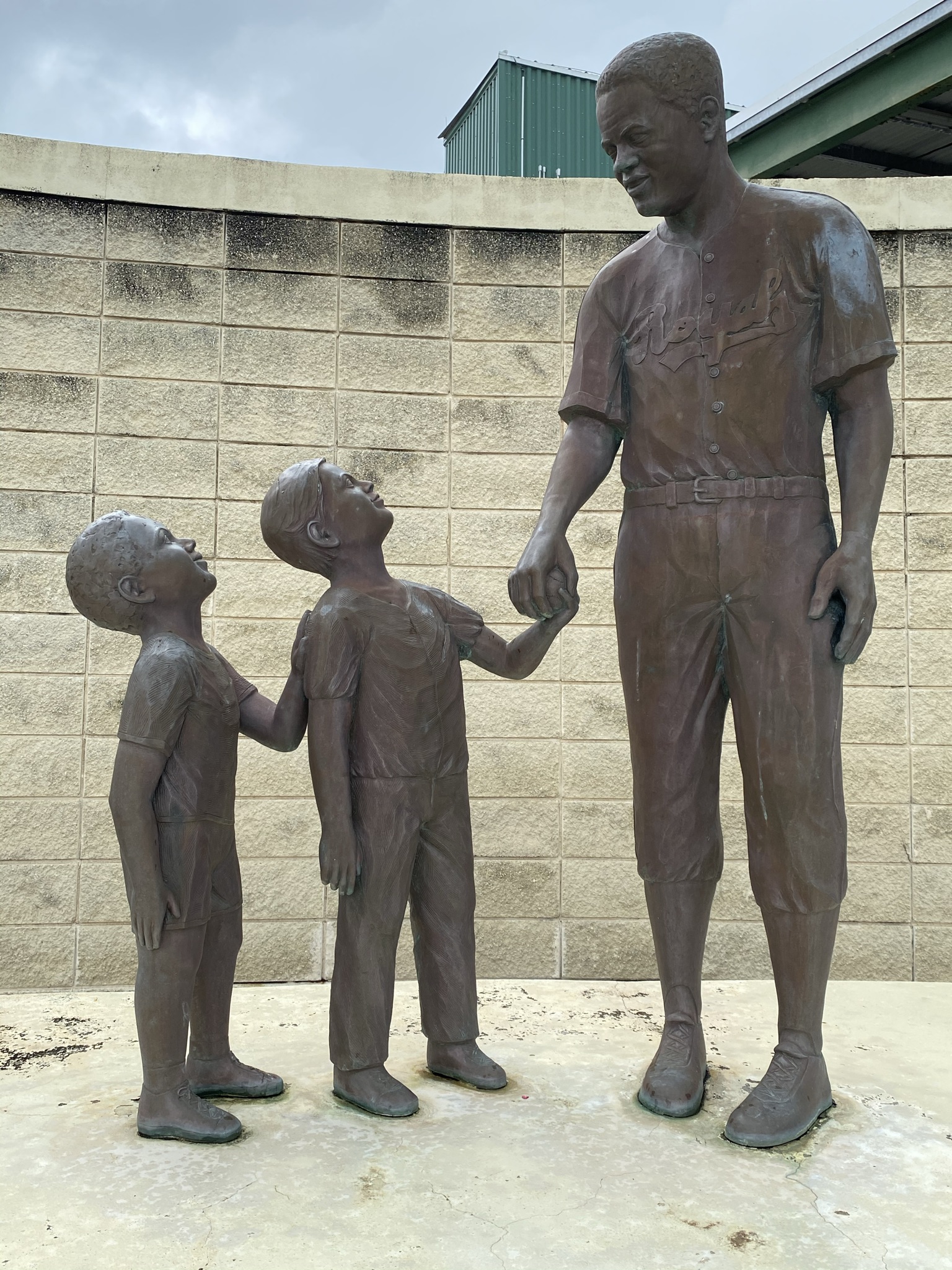 Though closed during my visit, I was able to walk around and peek into the ballpark, affectionately known as “The Jack,” from various spots, and to see the statue near the front entrance. The statue, dedicated in 1990 with Jackie Robinson’s wife Rachel in attendance, shows Jackie with two children, one black and one white, with hands connected to each other.