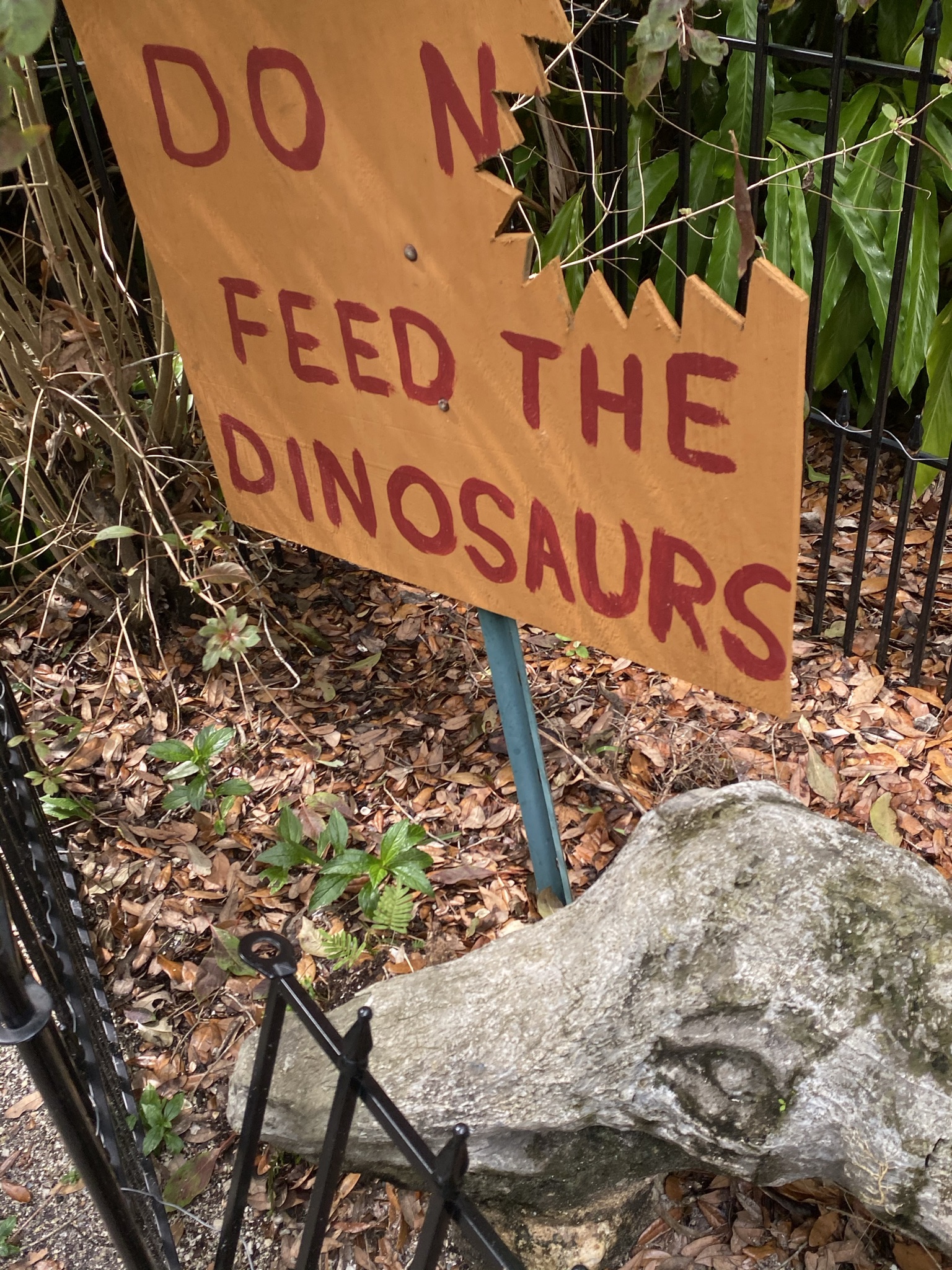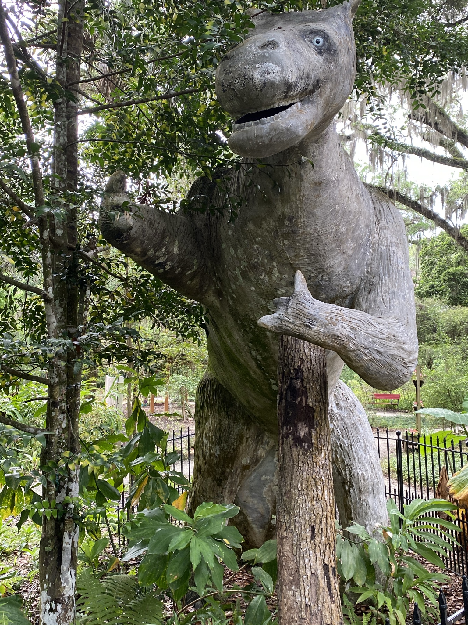 Among the concrete dinosaurs that still inhabit the gardens is the Giant Ground Sloth, which apparently roamed this area of Florida now known as the birthplace of speed—again, I embrace the irony.