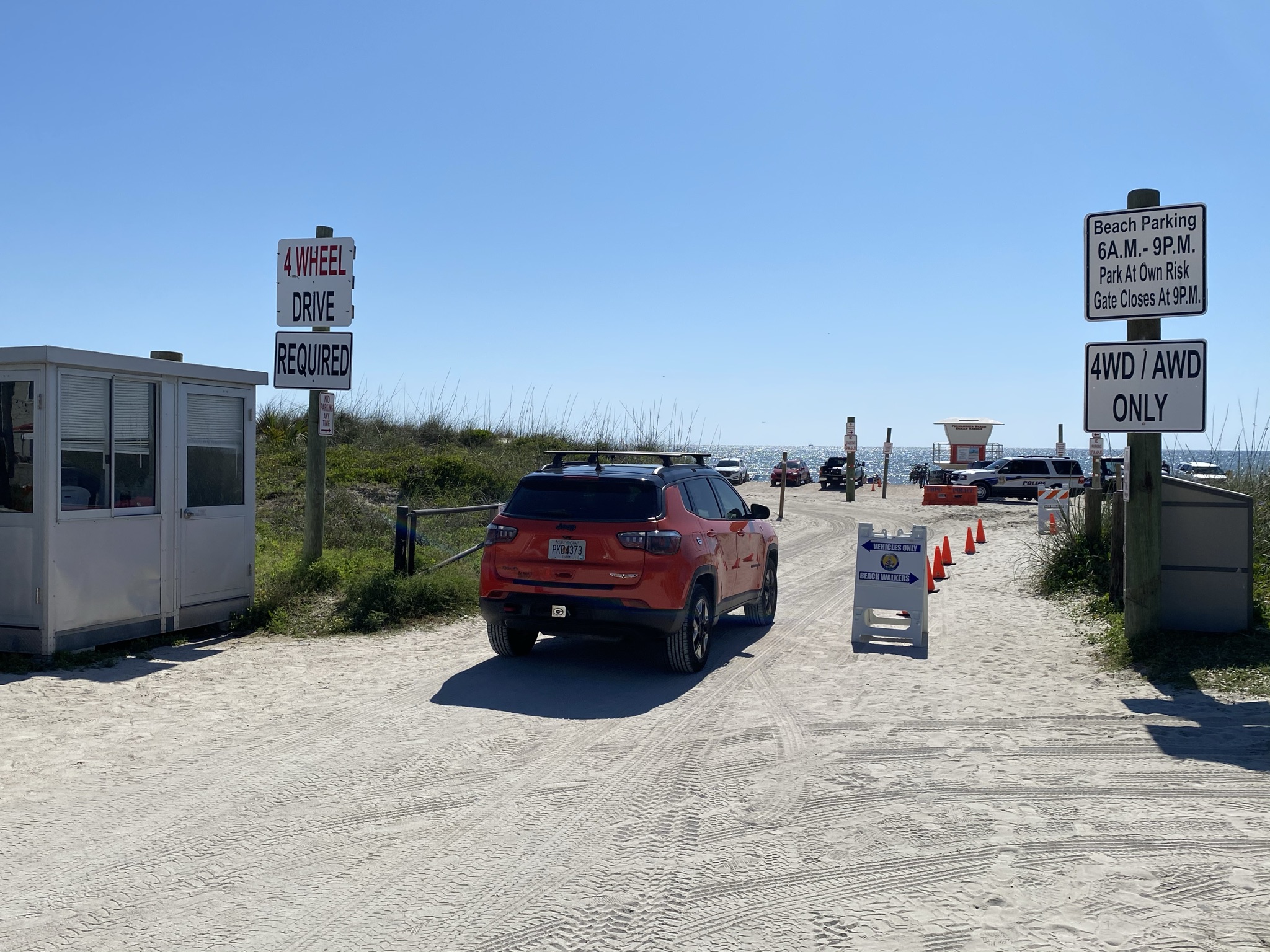 There are several roundabouts, each dotted with local businesses. The first, close to two and half miles from Main Beach, is where I enjoyed my breakfast at Tortuga Jacks. It is also where you will find Seaside Park and the first beach access point allowing vehicles on the beach (four-wheel drive only).