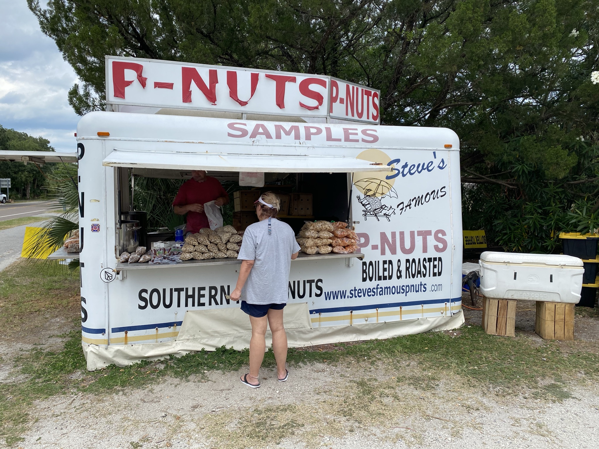 Next to Fort George Surf Shop is a Steve’s Famous P-Nuts stand, which offers up some nutty snacks, including plain or Cajun-flavored boiled peanuts. The stand tends to be open only on the weekends.