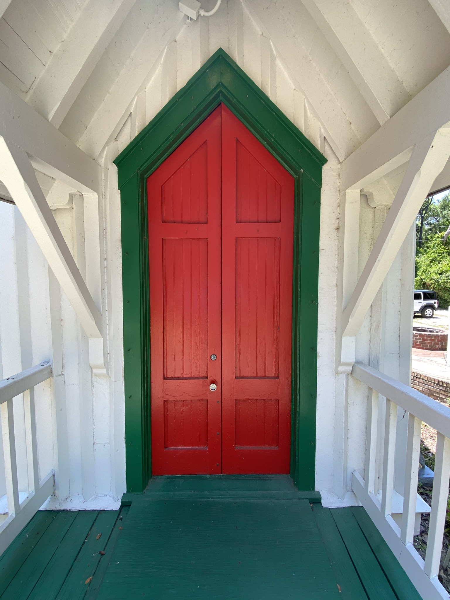 A feature of the church is its red doors, symbolizing the church’s welcoming to all worshippers: