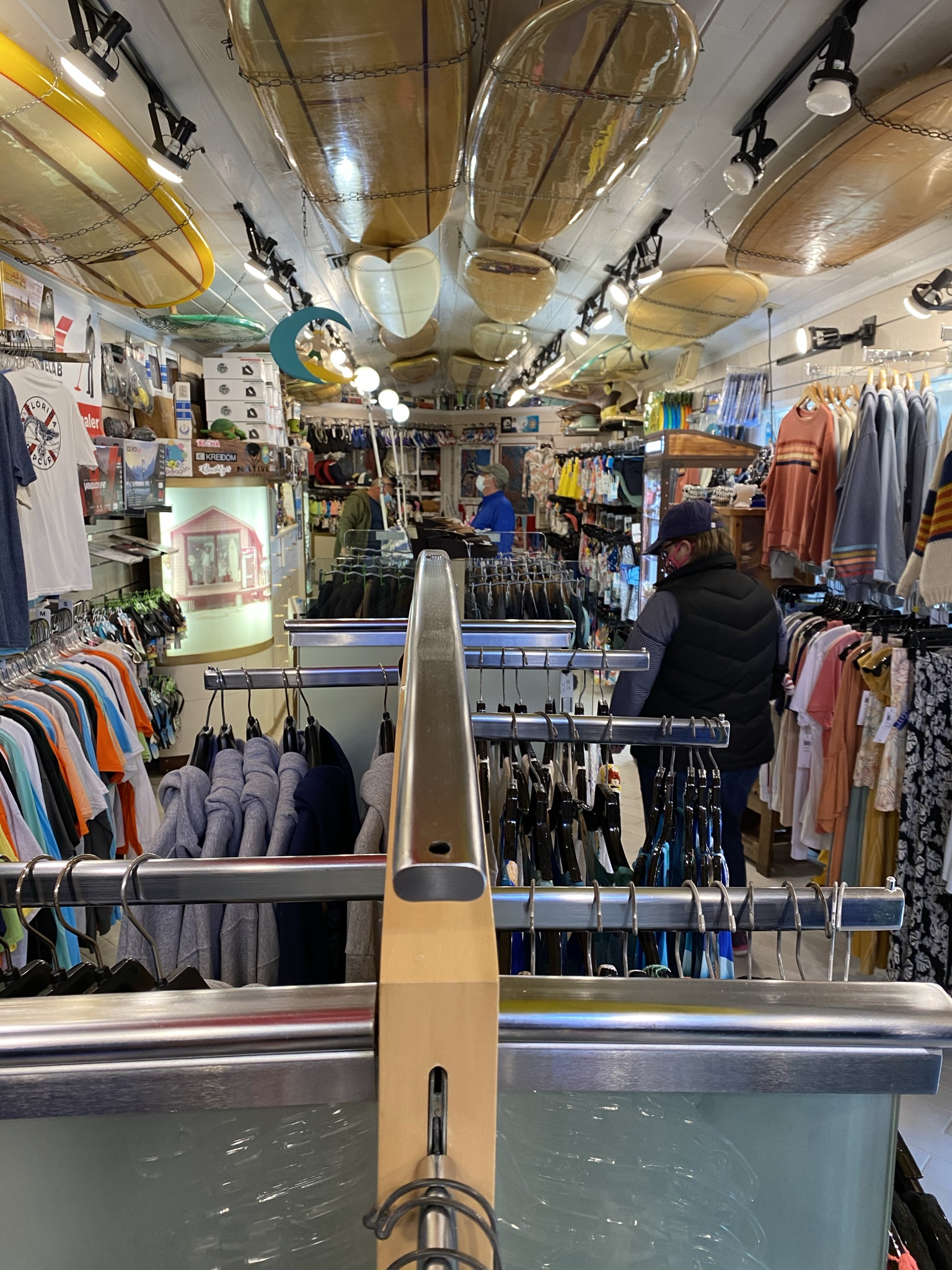 Housed in what was once a WWI army barracks, the shop is jammed-packed with beach and surf apparel, along with surfboards and accessories.