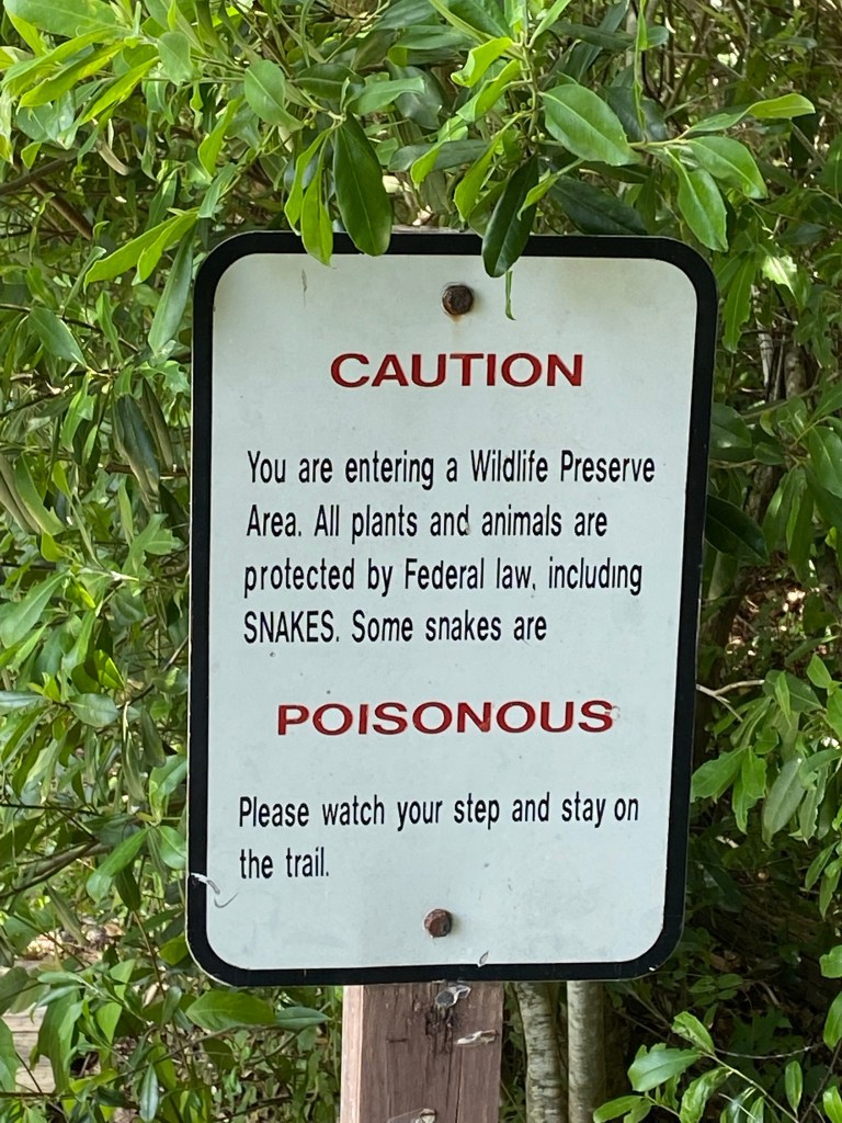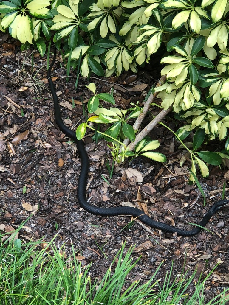 A gem in the Florida state parks system is Washington Oaks Garden, where on our last visit, we did see three snakes: the beautiful eastern indigo. Non-venomous, each were basking in the sun along the garden trails.