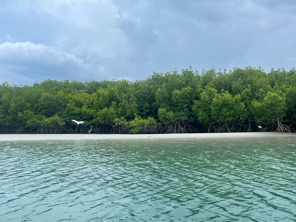 She also took this shot of some birdlife within a grove of red mangroves: egrets and a blue heron.