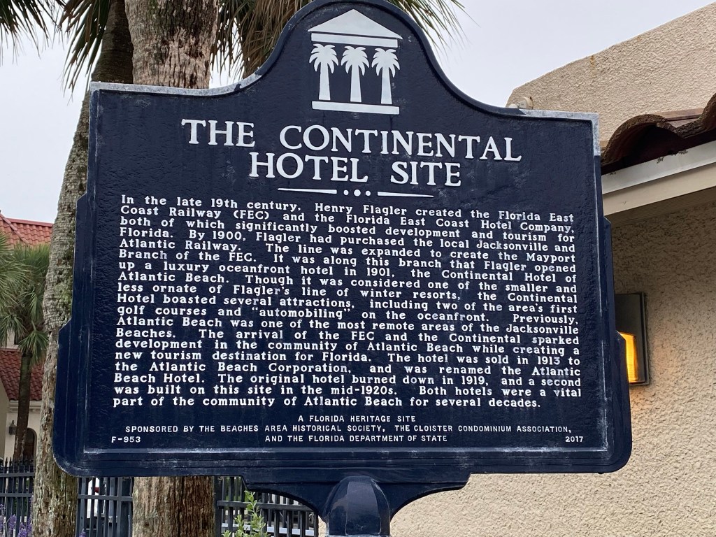 At what was then Pablo Beach, Flagler began to develop the tourism industry in Florida with luxury resorts all along Florida’s Atlantic Coast, including The Continental Hotel, built in 1901 as a summer vacation resort.