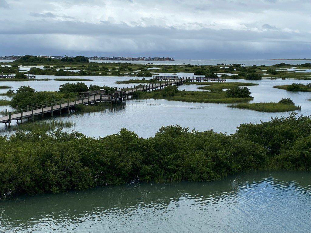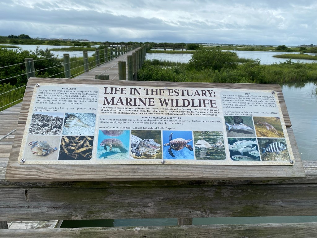 “As you walk its length, simply turn around and you are instantly transported back nearly 450 years in time to the initial Spanish occupation. Looking back at the Park, you can see the watchtower and cannon as they defend the original 1565 site of St. Augustine – look further, and you see the Astillero which holds the chalupa that is under construction and the village of Seloy tucked back away from the shore.“