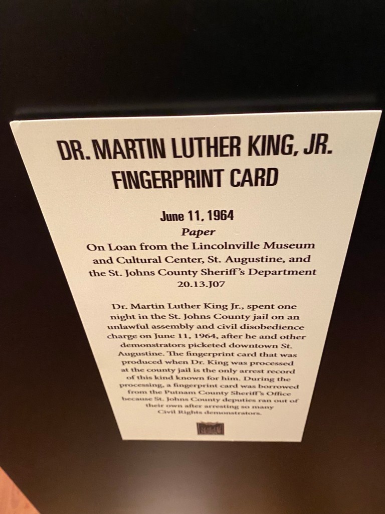 The ACCORD museum commemorates the efforts and courage of St. Augustine’s black community just prior to the Civil Rights Act of 1964 passing through Congress. The heroic (and as the museum states “sheroic”) actions in the face of severe segregationist retaliations, often violent, are credited with pushing Congress to pass the act into law, especially as national media showed the country and the world the work of St. Augustine demonstrators in peaceful protest while facing intense racist actions.