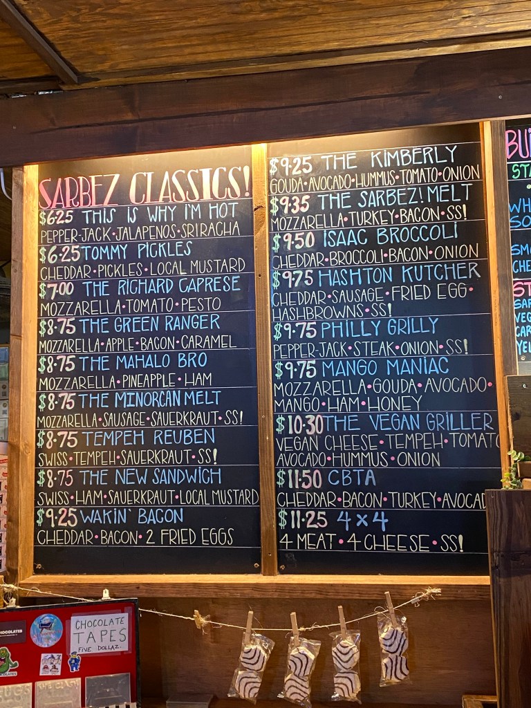 Our drive across the Bridge of Lions on A1A put us in expected traffic; our less than two-mile journey took nearly 30 minutes to complete. Once we crossed the bridge, however, we found our little slice of grilled cheese sandwich paradise—“Sarbez! The Grilled Cheese Capital of St. Augustine!”