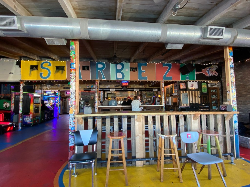 Sarbez! is simply a delightful place to grab a local brew, choose from a long list of grilled cheese sandwich options, and enjoy a 1980’s-style arcade room. The decor is funky, fun, and fantastic! While we drove to Sarbez!—and spent some time trying to find a parking spot, I recommend taking a walk across the Bridge of Lions from the downtown side, especially if parked at the Historic Downtown Parking Facility ($15 per vehicle, per entry). The walk will offer spectacular views of the Matanzas River and St. Augustine’s downtown, with Flagler College in the background.